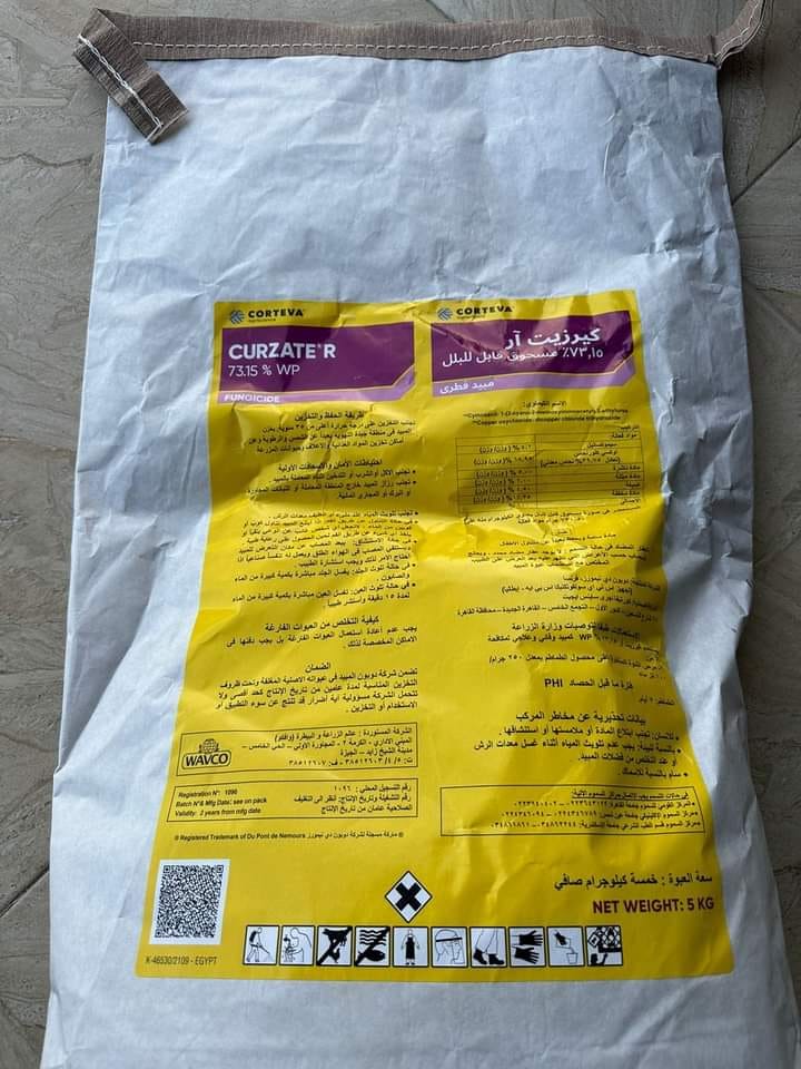 كيرزيت (Curzate 72.5 WG) هو مبيد فطري مزدوج التأثير (وقائي وعلاجي)، يُستخدم لمكافحة الأمراض الفطرية التي تصيب النباتات، خاصة البياض الزغبي (Downy Mildew) واللفحة المتأخرة (Late Blight) في البطاطس والطماطم والعنب وغيرها من المحاصيل.